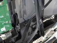 Disconnect the vertical sync cable in the upper left corner of the screen. Use the tip of a spudger to push on the connector's side tabs and gently walk it out of its socket.