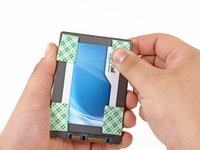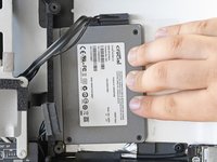 Press the exposed adhesive side of the double sided tape to the corner of the SSD.