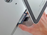 Carefully set the SSD into the iMac optical bay as close to the lower left corner as possible.