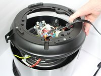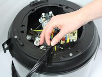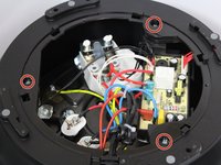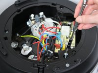Remove the three 19-mm screws in the black plastic base's edge using the PH-1 head screwdriver and twisting counter-clockwise.