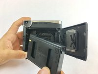 Turn ON the camera, and flip it over so that the back cover is visible.