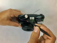 Use the black spudger to pry off the silver casing on the top and the bottom of the camera.