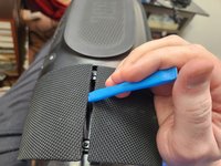 Using your opening tool, pry into the seam in the mesh cover on the bottom, lifting up the back side.