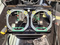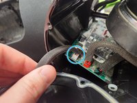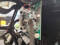 There is a notch in the PCB where the motherboard slots into a rib of the frame of the housing. The motherboard must be carefully tilted forward past this notch.