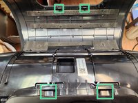 Using your opening tool, pry into the back of the mesh cover where indicated to release the two catches.