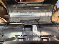 Slowly and carefully, keeping an eye on all the cables inside the housing to make sure nothing gets caught and damaged, keep the bottom of the battery compartment flat on the work surface and tilt the housing backwards.
