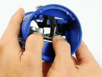 Scrape the battery wire sealant off with a plastic opening tool, and ensure it is free of the body of the speaker and wires.