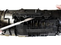 Use your hands to gently open the two halves of the casing and slide the fabric cover off of the interior housing.
