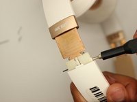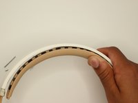 • The headband is difficult to replace, however after lining up the holes, the headband will snap into place. Push into the plastic and push away from you. A click will happen indicating it attatching.