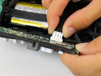 Using the black spudger, carefully remove the cord connecting the battery to the motherboard.
