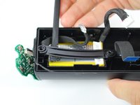 There is another piece of tape on the side of the device with the control buttons. Lift the tape with the classic spudger and then peel the rest of the tape off.