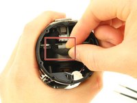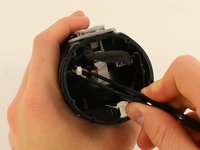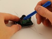 Peel back the black adhesive on the bottom side of the component with the tweezers and remove the wires underneath.