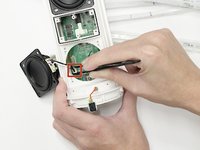Use the straight tweezers to disconnect the speakers from the motherboard.