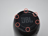 Remove the six 5mm screws on top of the JBL Pulse 3 with a Phillips #0 screwdriver.