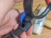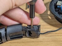 • Align the new earpiece cup holder with the hole from before and re-insert the holding bar we pried out.