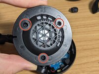 • The earpiece has 3 screws holding it to the back of it. Use your screwdriver to remove them all. The top of the earpiece should lift from the bottom piece.
