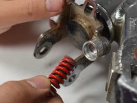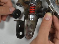 Remove the bolt and bearing and the black rubber stoppers. Remove the metal tube between the bolt.
