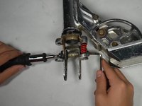 Remove the bolt in the same manner as the wheel. While applying pressure to the left side, unscrew the right using an Allen wrench.