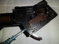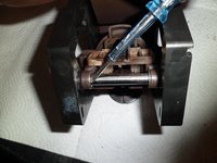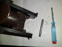 Now push the axle through the chassis. When the brew-group is filthy and greasey it will move bad - so lay the brew-group on the side and push the axle with the screwdriver.