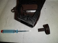 Now remove the axle. Inside are two snaprings. The screwdriver points at one. Use the screwdriver to unlock these snaprings.