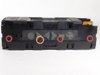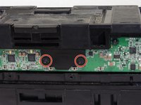 With the battery facing forward, remove the three indicated T6 9.5 mm screws.
