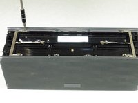 Remove the two PH0, 5.8 mm screws on the small plastic black panel using a screwdriver.
