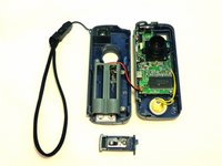 Before completely separating the two halves, separate the case from the battery compartment cover, pulling the case apart. Take care not to break the plastic hinge as the battery compartment cover is removed.