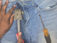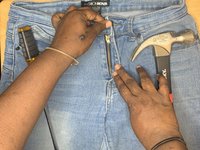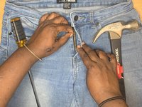 Continue to hammer the top and sides if the tracks aren't connecting when you zip up the jeans.