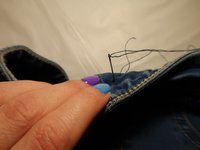 This is a simple repair of adding a two-hole button onto a pair of jeans. This repair requires a needle, thread, fabric scissors, and a fabric marker. After following the steps in this guide, a two-hole button should be firmly attached to a pair of jeans. Keep in mind that the needle being used in sharp and is hard to spot if dropped.