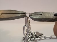 • Open this jump ring (the last one, which holds the clasp) with pliers.
