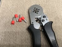 Insert ferrule (now with wire) into the crimper (but don't crimp the plastic collar!), and squeeze to crimp - these crimpers are self-adjusting to wire size.