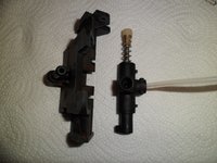 Second and third picture show the ready assembled valve: Push the white part with the spring together and insert it in the valve-block. You see the notches, they only fit in one direction. :) I now understand that my camera is bad, I hope I may buy a better one.