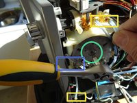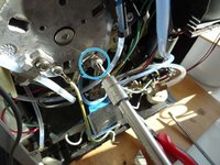 Then remove the power cables: A gray cable leading to the thermal fuse, a blue one directly from the heater (can also be pulled later) and the green-yellow protective cable is unscrewed.