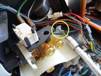 This is the thermal fuse. First remove the cable lug, then unscrew and fix together with the cable on the new block, as well as the yellow-green protective cable.