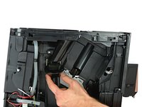 Now all we have to do is simply grab a hold on the machine, poke the top latch, release the lower clasp, then slide the side panel out to the back. Right?