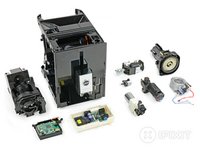 There are no adhesives or one-way-clips used inside the machine. However the side panels with their glass front and tiny, invisible hooks are a major drag (even authorized technicians might struggle at this point).