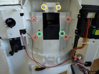 Drehe die vier Torx T10 Schrauben heraus, mit denen der Halter des Kaffeeauslaufs befestigt ist.