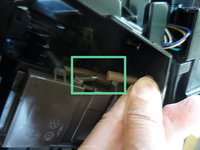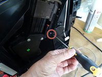 Das Seitenteil mit dem Schalter ist vorne ganz unten mit einer Torx T15 Schraube befestigt. Drehe sie heraus.