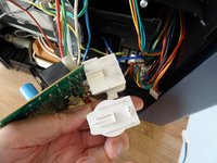 Ziehe den Anschluss des Entstörfilters links unten ab.