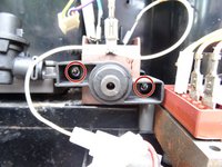 These screws have an oval head that makes them look like rivets (picture 2). You need to use a special bit for their removal. If the right bit is not available, it could be done with a pair of needle nose pliers. Jura wants to keep us out of our own machines!!!!