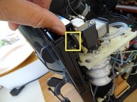 The microswitch is held in place by a black plastic fabric. Push the catch to the left and lift the microswitch out. The cables can stay connected.