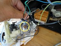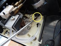 Disconnect the hose from the pump. Pay attention to the little seal, it probably lingers afterwards. It is good to replace them with a new one when assembling.