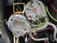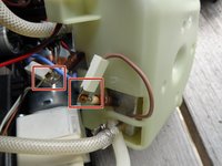 Remove both Torx T25 screws from the brackets on the thermal fuses. Remove the thermal fuses.