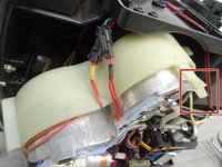 Remove the Torx T25 screw from the eyelet of the yellow / green ground cable. Detach the cable.