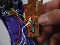 Keeping all wires connected to their attachments, place the front half of the device face down.