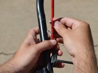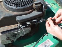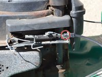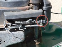 Following the cable down to the engine, you see that a zip tie holds the cable to the main handle.