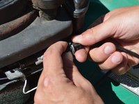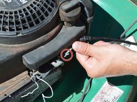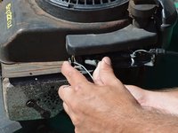 Locate the throttle assembly on your mower on the right side of the push bar.