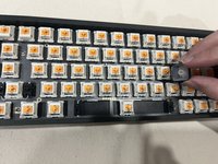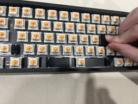 Using your fingers put the switches back into the circuit board by lining up the switch holes on the board with the bronze pins on the switch and using a little amount of force press them down into the board until clicked.