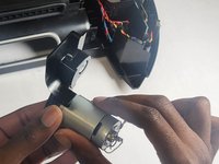 Lift the wheel to detach the tensioning spring. This step requires you to first press down on the wheel, then detach.