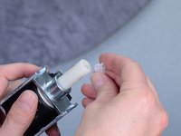 Use your fingers to unscrew the hose barb from the outward-facing end of the pump.